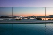 Luxury apartment for sale in Es Pouet. This brand new and modern design house for rent, is located in Talamanca, in one of the most exclusive residential compounds of Ibiza Island. It was designed by the prestigious Spanish architecture studio A-CERO-Joaquín Torres Architects. The house is 340m2. The space is split into 4 suite bedrooms, each equipped with their own bathroom, marble floors, built-in wardrobes, air-conditioning and television with canal plus. There is no problem in terms of parking as the grounds have two parking spaces. Furthermore the house has 24hour security, an alarm connected to the police, 60 surveillance cameras and 60,000m2 of fenced land. In addition there is also a 1,600m2 infinity pool: a zone of complete relaxation surrounded by sun loungers from which you can enjoy the magical sunsets. It is located just 3 metres from the beach and is very close to the promenade. Excellent views of the bay of Talamanca and the most beautiful sunset from the Island of Dalt Vila. The house is located in Es Pouet residential compound of Talamanca, one of the best areas of Ibiza island, in the centre of Talamanca bay, just 2 kilometers away from the village of Jesús and 4 kilometers away from Ibiza city and the seaport of Ibiza, where you can find the Marina of Ibiza Nueva and Marina Botafoch, as well as the exclusive Rocallisa golf field.