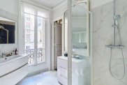 Jean-Baptiste Dumas/ Laugier neighbourhood. This particularly bright dual-aspect apartment offering 144 sqm of living space is on the 1st floor of a fine late 19th century building with a lift located in a peaceful street near the shops and Pereire Gardens. Oozing with period charm, it includes an entrance hall, a spacious double living/reception room, a dining room, two bedrooms, a bathroom, a shower room and a separate wc. The dining room could create a 3rd bedroom if required. Ample fitted storage space. With a storage room, two cellars and a compact maid's bedroom. A parking space in rue Vernier may be acquired.