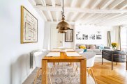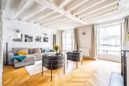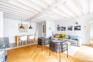 PRue du Bac. This charming apartment featuring parquet flooring, exposed beams and fireplaces is on the 3rd floor of a fine 18th century building. Overlooking a peaceful courtyard, it offers 94.79 sqm of living space as defined by the Carrez Law including a living/reception room, a partially open-plan kitchen, a suite with a bathroom and wc, a second bedroom with a shower room/wc, a separate wc and a utility area. With a top-floor maid's bedroom and a cellar. The building is not equipped with a lift.