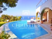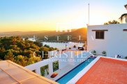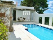 Discover the epitome of luxury and serenity at Villa Diosa, part of an exclusive offering of the last full half-island in the Mediterranean and Ibiza. Just 31 km from the capital and enveloped by 160,000 m² of unspoiled land, this magnificent villa offers an unparalleled combination of privacy, security and first-class amenities, all within walking distance of essential services and stores. Built in 2003, Villa Diosa boasts a spacious living area of 696.2 m2 + 2 swimming pools of 99.58 m2 mirror of water, within an estate that includes three buildings, high ceilings, large windows and exquisite finishes. Natural light floods every room, highlighting the mesmerizing views of the sea and surrounding landscapes. Experience the magic of Ibiza's famous sunsets from your private garden, balconies or exclusive access to the water in the villa's private bay. Enjoy unparalleled leisure and relaxation with a private pool, Balinese beds and a picturesque palapa. Recharge and rejuvenate in the state-of-the-art gym and sauna or enjoy the convenience of a fully equipped kitchen, staff quarters and Wi-Fi. With a valid tourist license and an incredible offering of 9 bedrooms, 6 bathrooms and ample private parking, Villa Diosa is a dream retreat for discerning individuals seeking a luxurious and tranquil retreat. Although unfurnished, this exceptional property is in excellent condition and awaits your personal touch to make it the perfect home or investment opportunity. Take advantage of this unique opportunity to claim your share of Ibiza's idyllic paradise at an attractive price, including the entire half island and Villa Diosa with its ample living space.