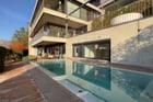 Positioned in an elevated and a privileged location, this bright duplex apartment for sale in Lugano-Albonago offers far-reaching views of Lake Lugano and the city. The refined and harmoniously executed interiors, ample windows that open up to the terrace with Jacuzzi, private garden as well as outdoor pool can satisfy the most discerning buyer providing ultimate living comfort. Just a few minutes from the center of Lugano.