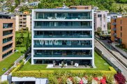An exclusive designer Duplex-penthouse for sale in Minusio in a quiet residential area. The modern open-space concept on two living levels, the elegant furnishings and the comfortable interior lift meet the highest demands. The large sliding windows in the living room and bedrooms let plenty of light into the rooms and provide easy access to the outdoor terraces with magnificent lake views. The cycling and hiking path along the lake is in the immediate vicinity.