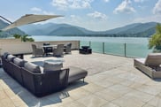 In Lugano-Muzzano, a 5.5-room penthouse apartment with a magnificent view over Lake Lugano is for sale. It is located in the modern Residence Cristal, only 6 km from the city of Lugano and the TASIS school and it offers bright and spacious interiors and a magnificent 303 m² roof terrace. A wellness area characterizes this property with a sauna, fitness and swimming pool for the exclusive use of the condominiums.