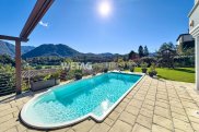 In Lugano–Breganzona, this contemporary villa for sale seamlessly blends elegance and comfort. Spacious, light-filled interiors have been designed to provide the utmost in modern living. The property offers magnificent panoramic views over Lake Muzzano, set within a tranquil and private natural environment. Outside, a beautifully garden, heated swimming pool, and elegant pergola create the perfect space for relaxation and outdoor enjoyment.