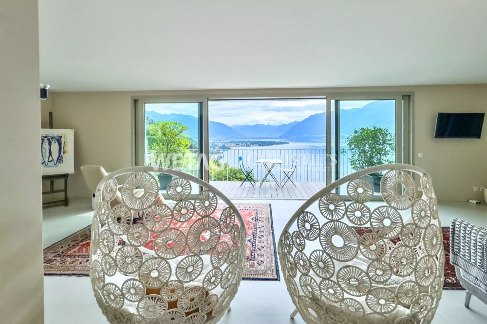 This modern two-family villa is for sale in Ronco sopra Ascona, situated in a peaceful residential area with enchanting lake views. The villa is divided into two separate apartments: a 4.5-room unit and a 2-room unit, the latter ideal for accommodating family and guests, ensuring maximum comfort. From the living room of the 4.5-room apartment, large windows frame a unique panorama, turning it into a breathtaking living picture. Recently renovated, the property is ready to be enjoyed immediately.